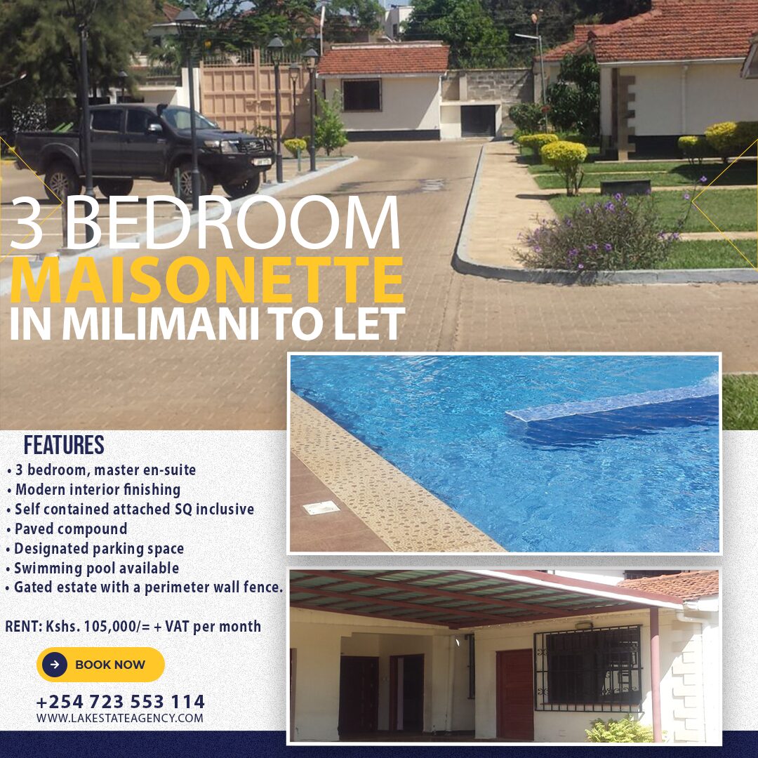 5 bedrooms to let in Milimani 5 spacious rooms 4 bedrooms en suite Spacious living room Parking space available 2 Domestic Servant Quarters inclusive Safe neighborhood Modern kitchen fittings Pet friendly…